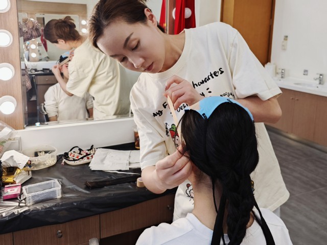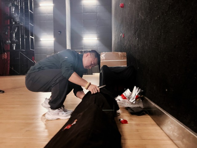 为了舞台效果的完美呈现,乐队老师和舞美队老师认真做好每项准备工作