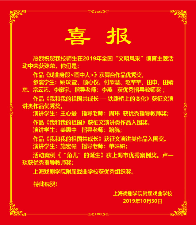 热烈祝贺我校师生在2019年全国“文明风采”德育主题活动中荣获殊荣