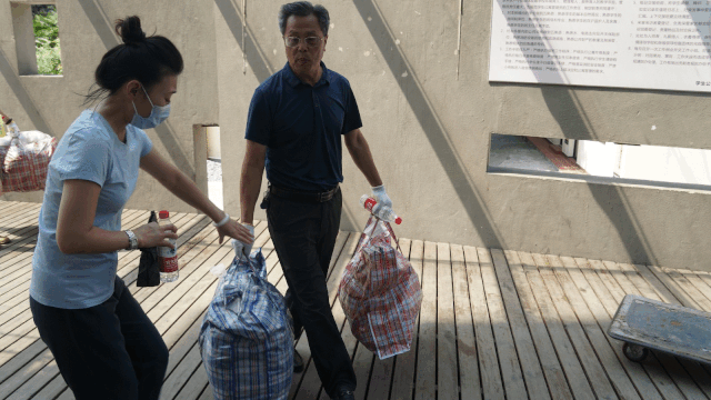 接下来的工作朴素且充实,由于天气炎热,汗水湿透了老师们的衣衫,但没有人叫苦叫累。封箱带、蛇皮袋、三轮车,劳动、汗水,负重、登高,这些熟悉的点滴,让年轻教师回想起了学生时代,让年长教师想起自己成长中的同龄孩子。此时此刻,老师们的心底与同学们的时空在无形中交叠,彼心同于此心,大手牵起了小手。