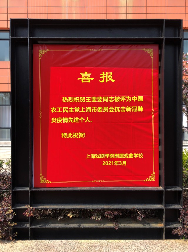 热烈祝贺王斐斐同志被评为中国农工民主党上海市委员会抗击新冠肺炎疫情先进个人