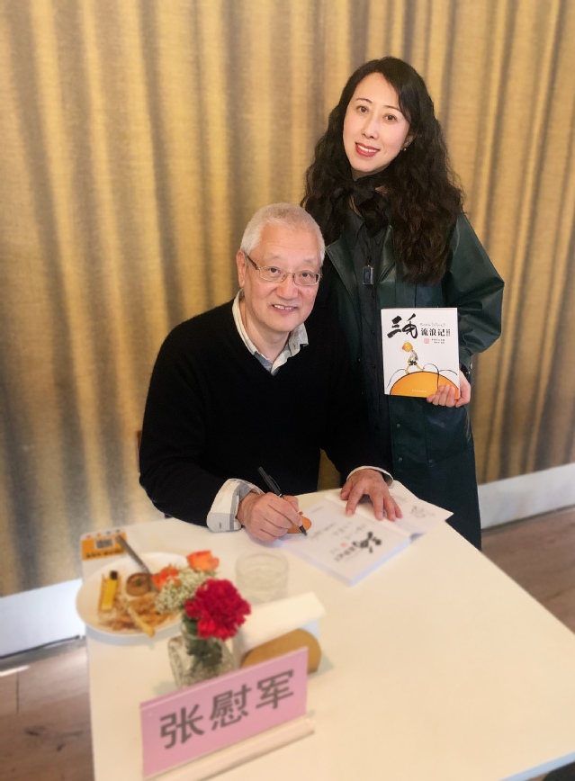 匆匆之间,不觉日暮。学校为每位老师准备了经典画册《三毛流浪记》,张老师更是热情地为大家一一签名题字:“三毛爱你!三毛的弟弟张慰军。2021年3月26日。”有的还题了上款,并加上“同学”或是“小朋友”的称呼!欣喜之余,老师们纷纷单独与张老师合影留念。