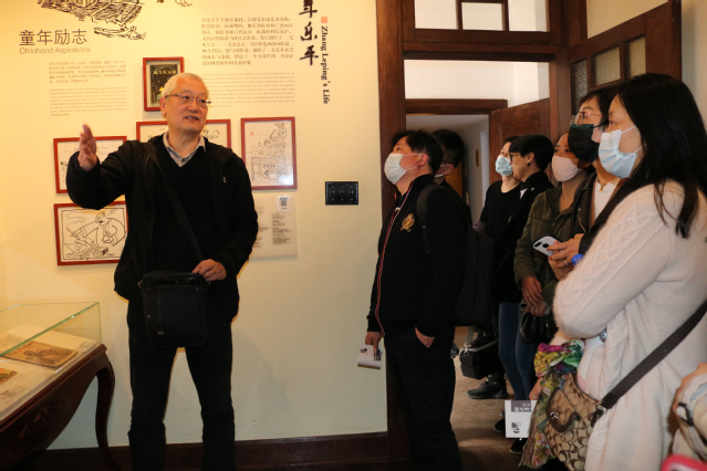 有幸邀请到了张乐平先生的四公子、自称“三毛的弟弟”的张慰军老师,担任我们的讲解员——“百年乐平”“大师漫画”“艺苑掇英”“友人画我”四部分,真实还原了张乐平先生的平凡生活与创作历程,从底层、花园到二楼,从客厅、书房、画室、卧室到餐厅,娓娓道来,如数家珍,倍感亲切。