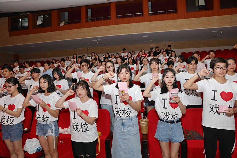三年风雨,三年欢笑;六年奋斗,六年成长,今朝相聚,已是毕业时!2018届毕业典礼以“情牵戏校,梦想启航”为主题,寄托了学校对于2018届毕业生的殷切希望!活动分为四大板块,首先是上午各班领取校友服与喷水池拍毕业照,中午各班在学校食堂聚餐,一同回忆经历的趣事、共度的戏校时光,畅谈对未来的憧憬。随后在白宫剧场门口的毕业墙上留言,同学们拿起手中的笔表达对戏校的敬意、老师的感恩与对同学的不舍。