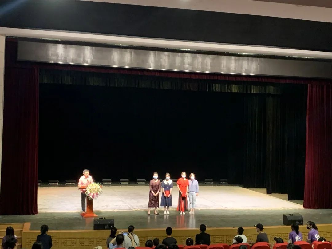 接下来是激动人心的颁奖环节,许多同学在各项比赛中取得了优异的成绩。首先宣布的是:首届海市金童奖的获得者—17京剧班张祥群,由唐禾香副校长为她颁奖。接下来由刘爱香副书记为上海市梅陇镇新馨少年获得者—17京剧班张祥群颁奖。