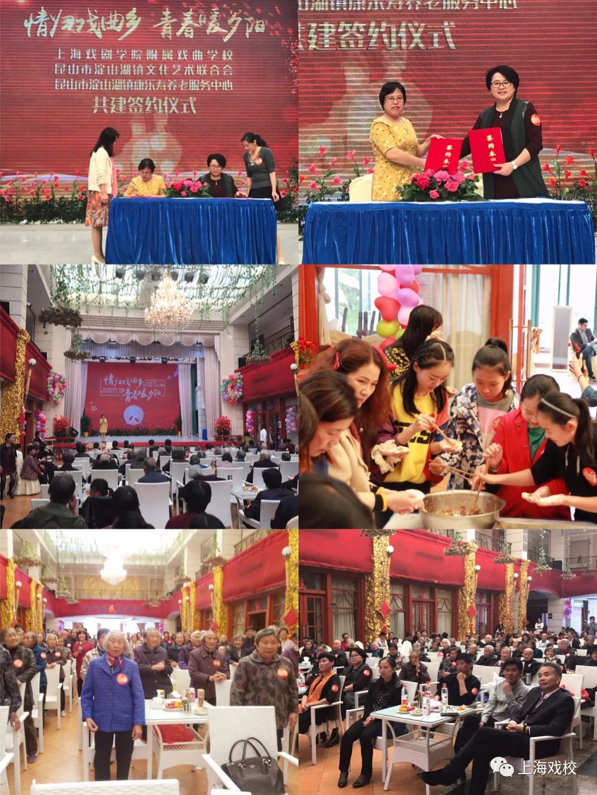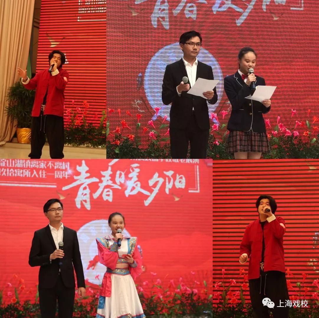 签约仪式后,“情归戏曲乡·青春暖夕阳”汇演正式开始。先是由寓所的爷爷奶奶们带来《欢歌联唱》的串烧节目,后来分别由我校沪剧、戏曲音乐、京剧表演,话剧影视,音乐剧等专业的同学们带来几个精彩纷呈的节目。同学们卖力、到位的演出,得到了镇领导、爷爷奶奶们的一致好评。