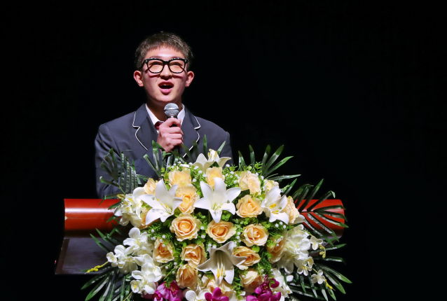大家早上好 !我是14京演的张铭泽,很荣幸能站在这里跟大家见面。首先请允许我代表全体老同学,热烈欢迎19级的新生加入上海戏剧学院附属戏曲学校的大家庭!