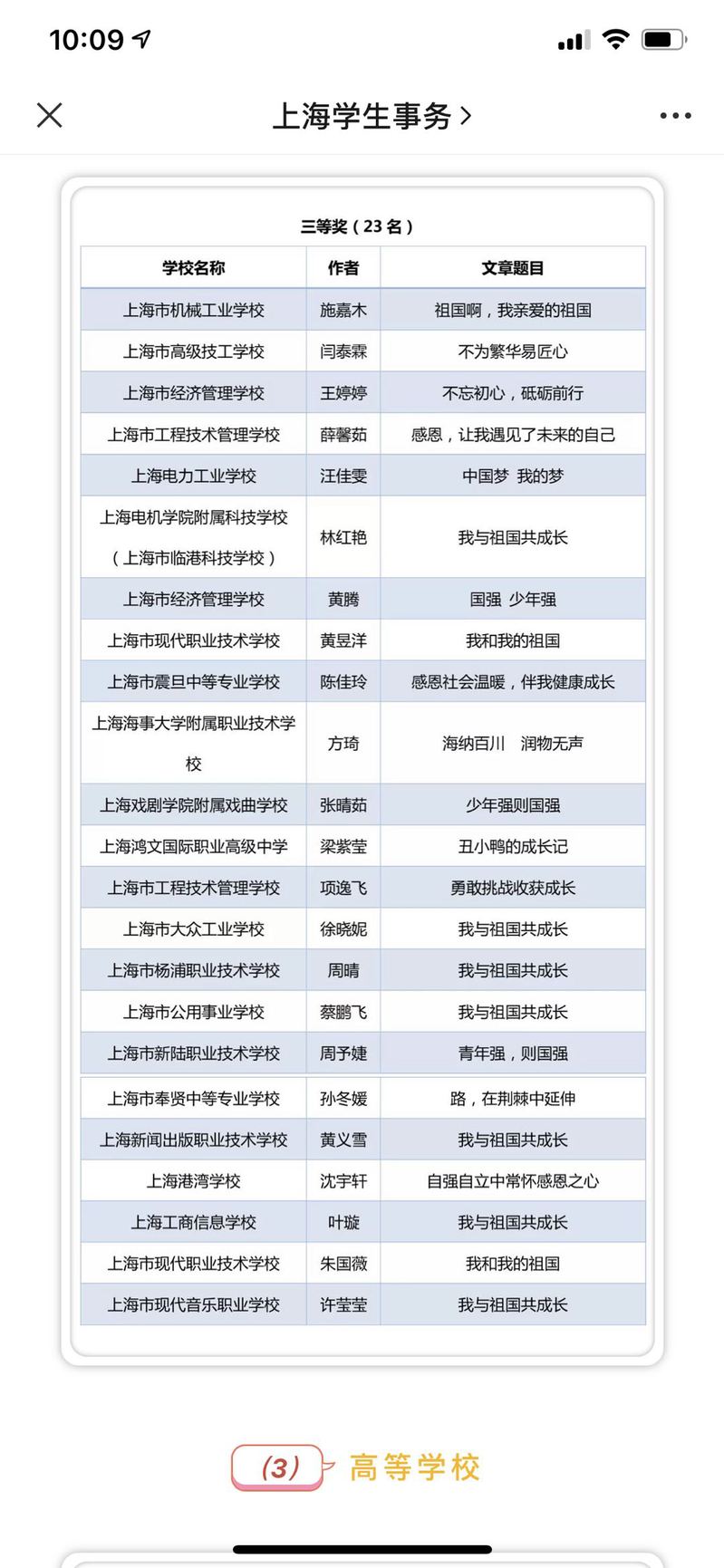 “我与祖国共成长”主题征文活动推荐表