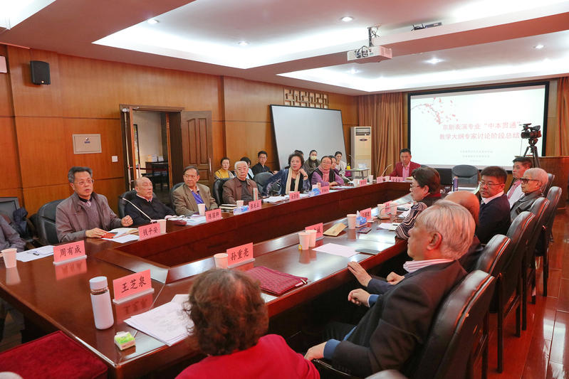 经过四天紧张而充实的讨论会,京剧表演专业“中本贯通”教学大纲专家讨论阶段总结会议在上戏莲花路校区召开。四天内,与会专家针对戏曲人才的培养规律,京剧表演专业中本贯通教学改革的总体思路、人才培养原则和整体规划,课程设置和多学期制方案以及京剧表演专业形体课、剧目课中本贯通教学大纲等展开系列研讨,与会专家客观分析,深入思考,热烈讨论,为大纲梳理工作提供了许多有实效高质量的意见和建议。