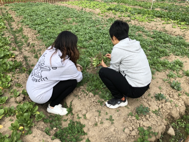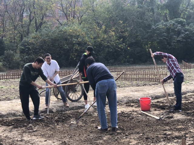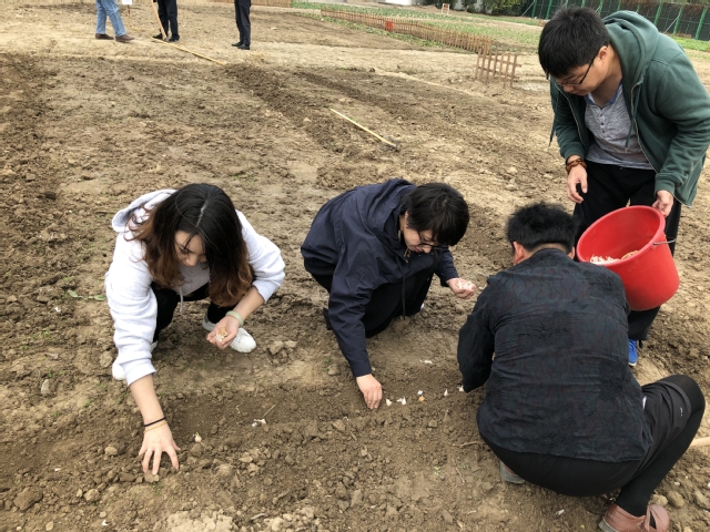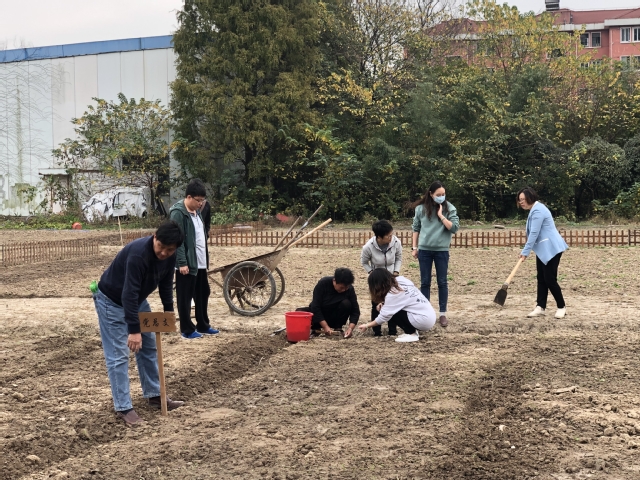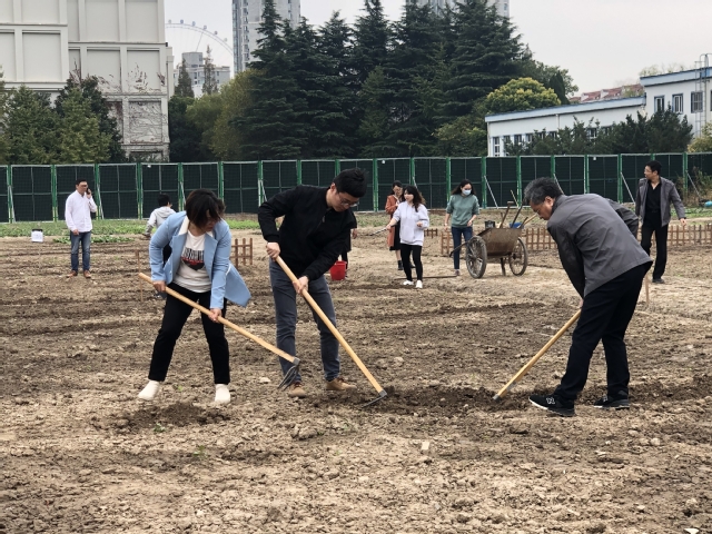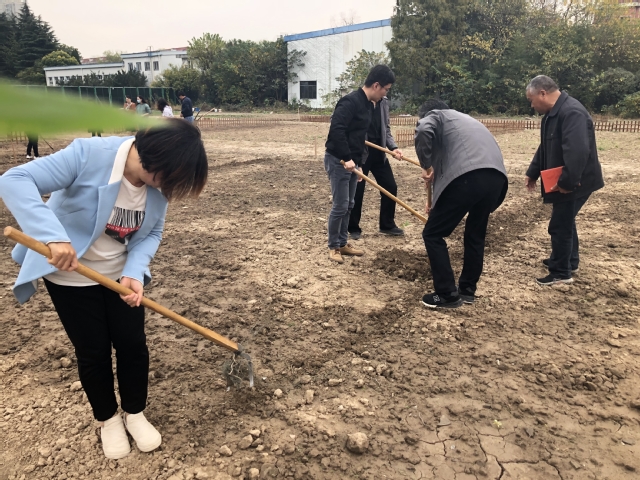 2020年11月19日中午,学校党总支、第二党支部党员同志一起来到学校菜园,参加义务种植活动。