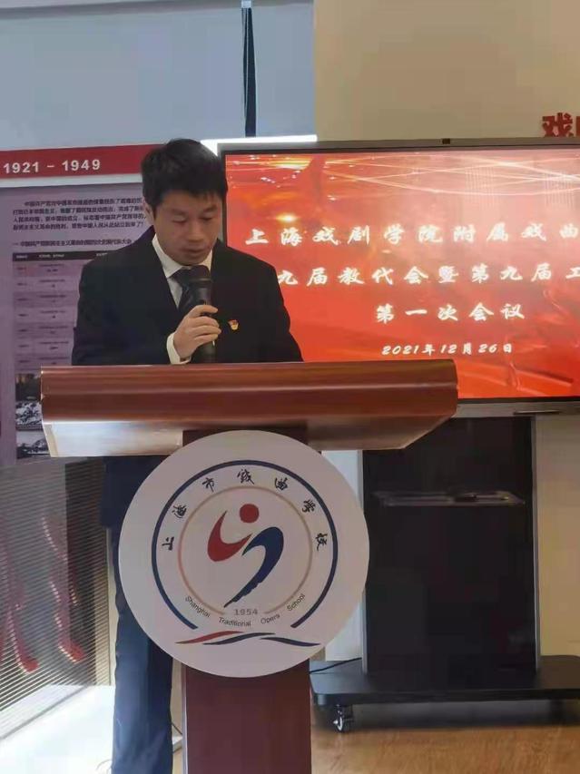 上海戏剧学院附属戏曲学校第九届教代会暨第九届工代会第一次会议于2021年12月26日在莲花路校区党建服务中心召开。大会的主要议程是听取和审议学校2020年行政工作报告、第八届工会委员会工作报告、学校章程,听取2020年度学校财务工作报告、2020年度工会财务经审工作报告,选举产生校工会第九届委员会委员及经费审查委员会委员。