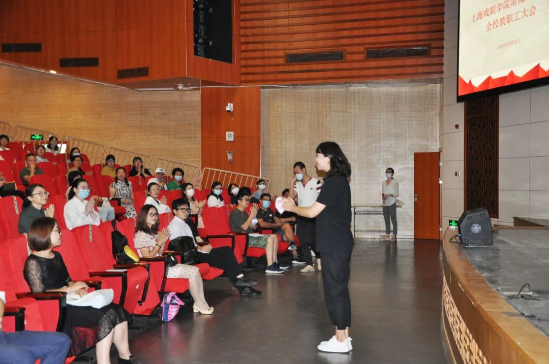 刘爱香副书记肯定了疫情期间班主任的工作,介绍了校办、学生科的工作内容,她同时对新学期工作提出了具体要求:认真谋划“十四五”规划,着重推进“四史”学习教育,加强党建。随后,刘爱香副书记传达了9月1日上戏工作会议精神,要求新时代全面落实从严治党,营造风清气正的良好政治生态 。接着,刘书记详细介绍了开学方案,她强调必须严格按照“分批、分层;错时、错峰、错区域”开学的总要求,做细做好学生开学、新生报到工作。