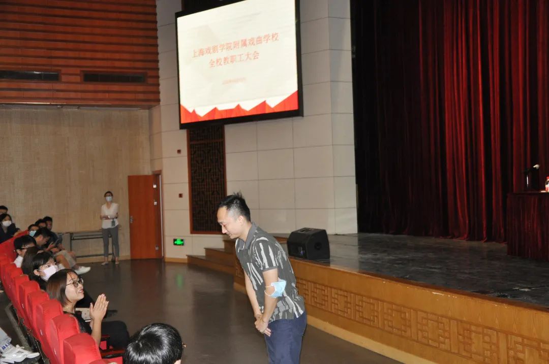 会议首先由刘爱香副书记介绍今年新进教职工、新支委成员、新教研室主任、新一任班主任等,对“2019学年度优秀班主任”进行了表彰,他们是:19昆班江沛毅老师,17京剧班郭元元老师,19木偶班马思思老师。