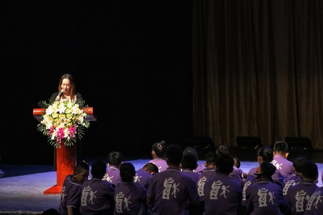两位同学们的精彩发言赢得了在场同学们的阵阵掌声,随后,戏音教研室、19级戏音班主任刘怡菁老师作为教师代表上台讲话,她教导同学们要遵纪守规,珍惜在校的学习时间,充实自己的业余生活,打好基础,主动学习,让我们在学校的生活成为我们灵魂中最宝贵的记忆。