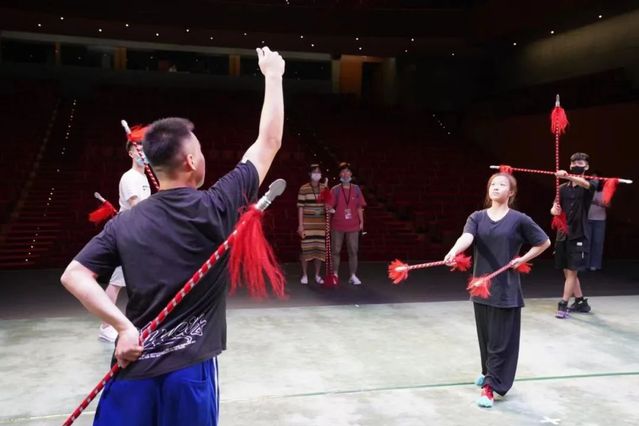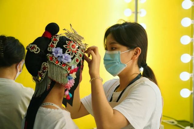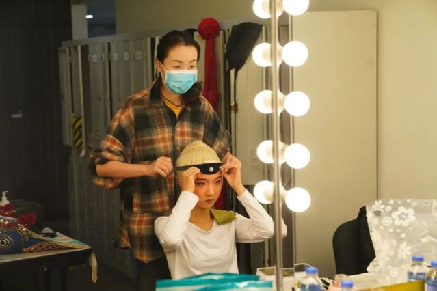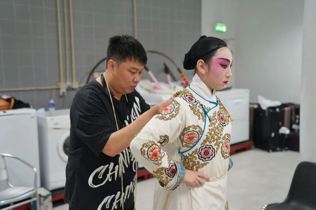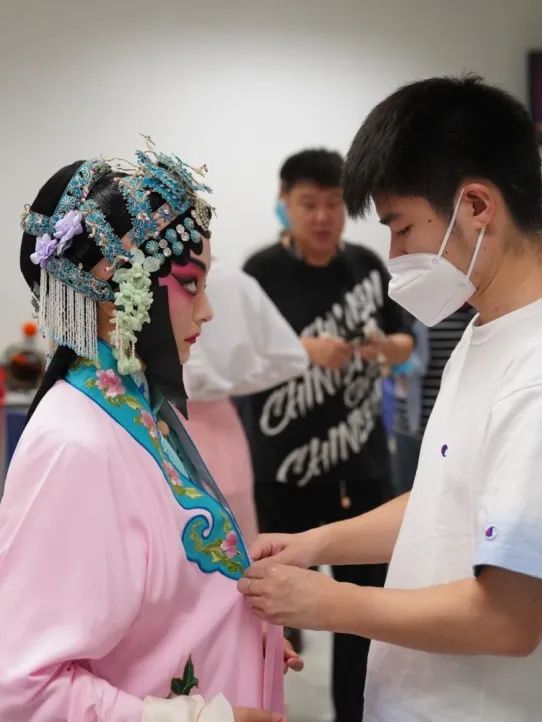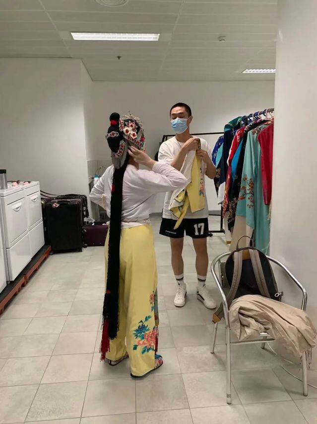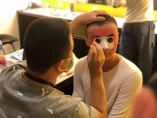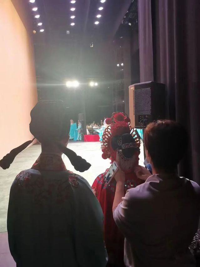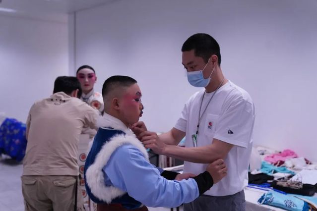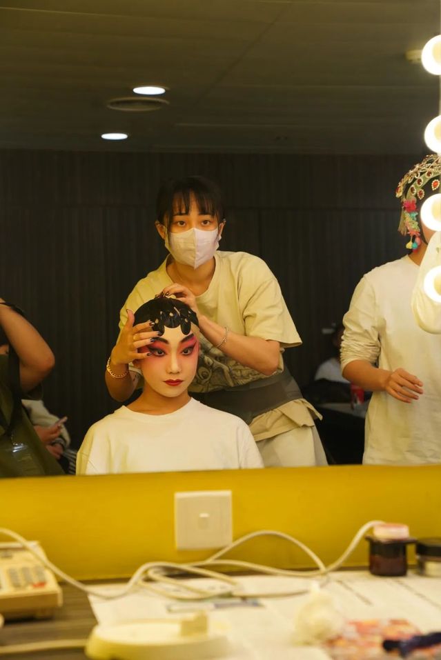 尤其为了疫情的后备需要,在六场带观众的演出前,特别增加了一场录像专场。日程紧,任务重,为了确保录像专场的质量,抵澳当天,舞美队长满人铭和乐队队长钱镇威、副队长路航带领老师们不顾舟车劳顿,第一时间赶往剧场装台调试,负责化妆的倪萌老师也及时和主教老师沟通妆面以求合理高效。第二天从走台、总彩排再到录像,整个团队几乎是马不停蹄。虽然依旧带来昆剧《挡马》、《牡丹亭.游园》,以及京剧的《三岔口》、《游街》等传统剧目,但学生演员却基本都是第一次来澳门,空空的观众席对于习惯了叫好声儿、初来澳门的小演员们极具挑战。几位主教老师丝毫不敢懈怠,只见孙丽、 季永鑫、李名扬老师在台上一遍遍盯着演员们走台排练;戴国良老师再三强调“一定要有精气神儿”;潘洁华老师叮嘱孩子们:“演员的责任在于调整最好的状态。无人喝彩,更要人来疯!”