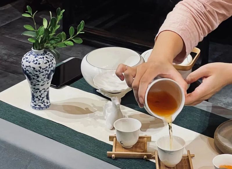 一楼大厅内,湖心亭茶楼的高级茶艺师首先为大家带来了一场极具感染力的茶艺表演。清雅古朴的乐声中,一方茶席,一套茶器。茶艺师的肢体语言和面部表情犹如戏曲表演艺术中的“手眼身法步”,在有限的时空内展现了境佳、茶美、水清、器净、艺精的茶道内涵,彰显了东方文化的深厚意蕴。