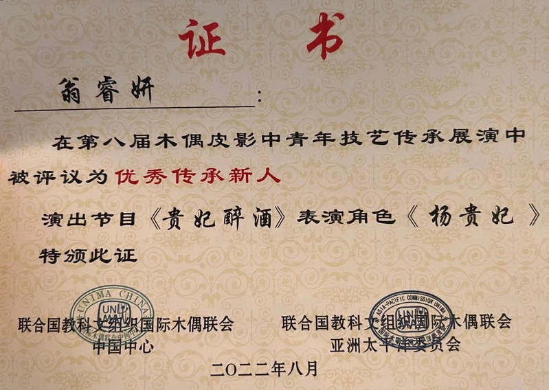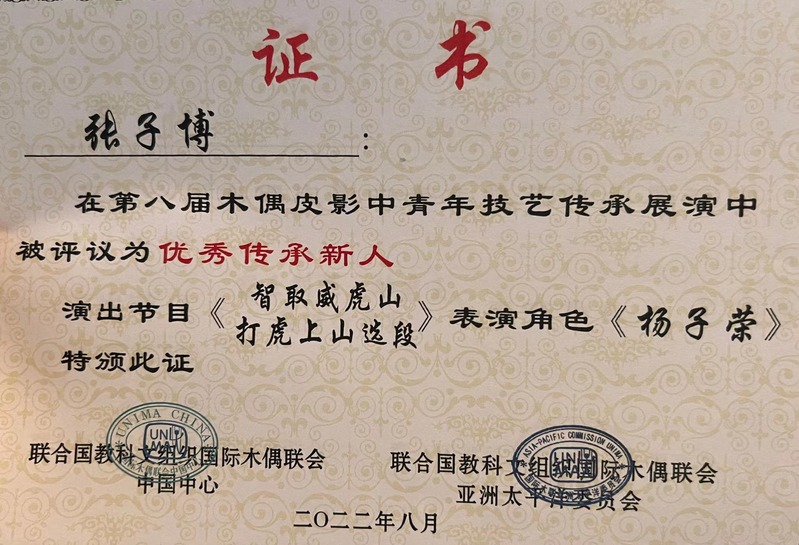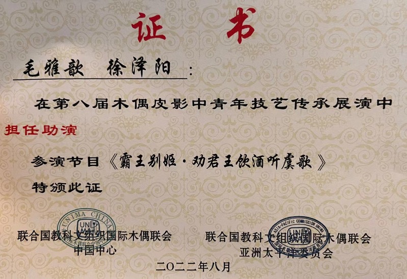 恭喜我校师生在第八届木偶皮影戏中青年技艺传承展演中获得相关证书