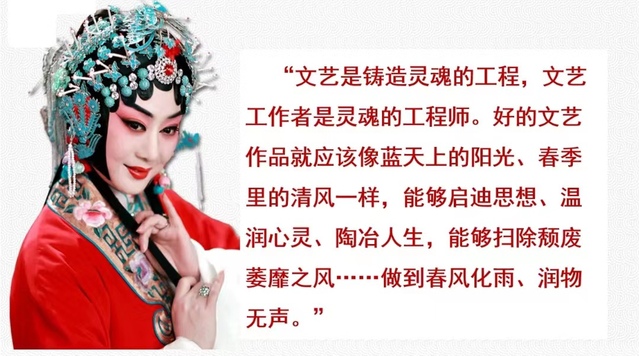 党的十八大以来,以习近平同志为核心的党中央高度重视中华优秀传统文化的继承弘扬和戏曲艺术的传承发展,同时作出了一系列安排部署,对文化建设方面意识形态工作提出具体要求。樊教授详细梳理了我们党在文化建设方面的成功做法以及取得的卓著成效,指出意识形态工作就是做人的工作,解决的就是思想认识问题和方向导向问题。学校是培养人才的摇篮,更要正本清源,加强思想引领和理论辨析。习近平总书记在给中国戏曲学院师生回信,对传承发展好戏曲艺术提出殷切期望:“戏曲是中华文化的瑰宝,繁荣发展戏曲事业关键在人。”学校是培养人才的主体,必须要始终坚持党对教育工作的全面领导,始终坚持马克思主义在意识形态领域的指导地位,针对教育领域一些错误思潮、错误观点,敢于发声、敢于斗争,旗帜鲜明亮明观点、表明态度。学校同时也要强化网络意识形态工作责任制,做到守土有责负责尽责,加强阵地建设和管理,发挥道德教育引导作用,形成网上网下同心圆,调动各方面积极性,团结一切可以团结的力量,共同为社会主义文艺之魂提供中国精神支撑。