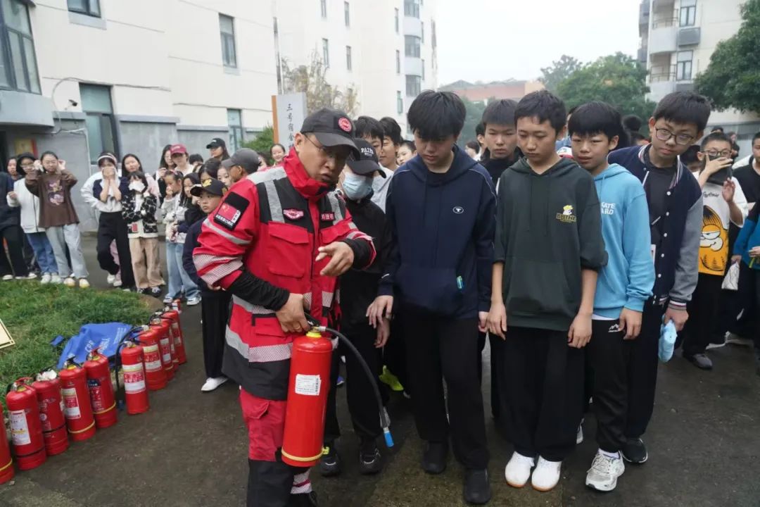 演习结束后,同学们积极踊跃地在专业教官的指导下参与了灭火器操作体验,学习如何在能力范围内扑救初起小型火灾。