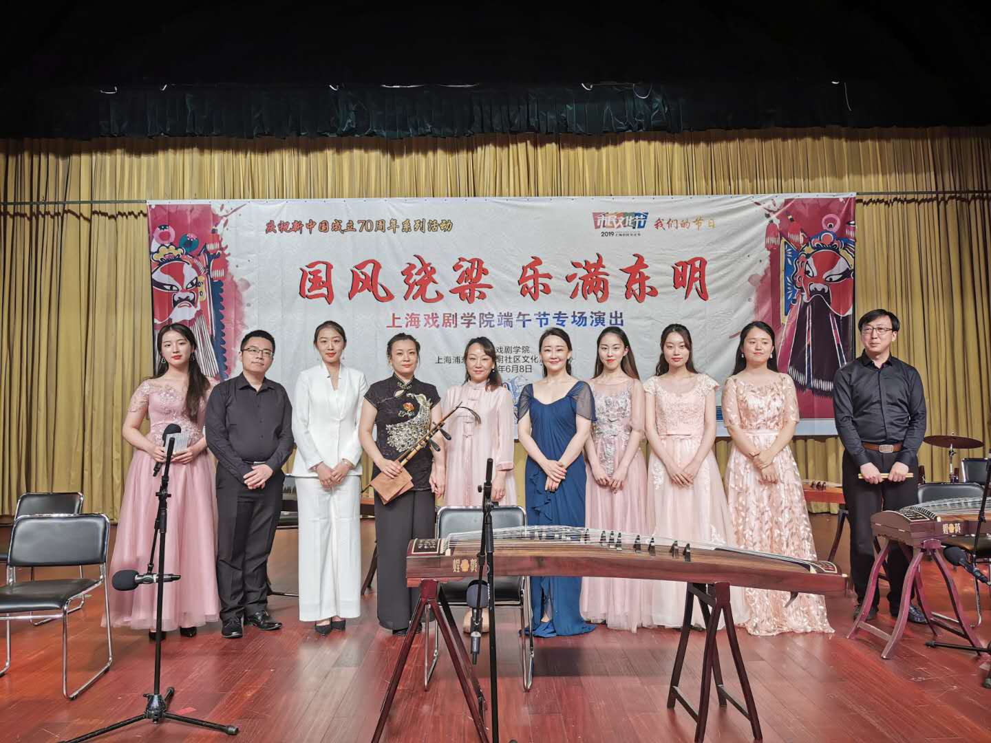 68日下午,为庆祝新中国成立70周年,由上海浦东新区东明社区文化活动中心主办的“国风绕梁 乐满东明——上海戏剧学院端午节专场演出”在东明社区文化活动中心圆满结束。我校戏曲学院10名师生参加了此次演出。