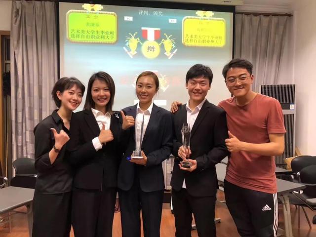 亚军:表演系及最佳辩手:18音乐剧孙欣业——正方三辩(右二)