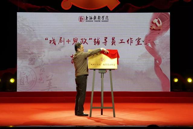 最后一个环节是上海戏剧学院“戏剧+思政”辅导员工作室的揭牌仪式,由上海戏剧学院党委书记谢巍揭牌并致辞。