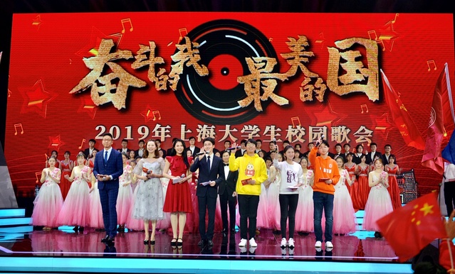 2019年12月15日晚,“奋斗的我 最美的国”2019年上海大学生校园歌会在上海财经大学体育馆举行。副市长陈群、市政府副秘书长虞丽娟,市教卫工作党委、市教委负责同志,本市有关高校负责同志出席。我校表演系(含音乐剧中心)余笛老师倾情献唱,16级音乐剧专业刘珂君同学担任《我和我的祖国》领唱,18级主持专业黄舒宁同学担任现场拉歌环节主持人。