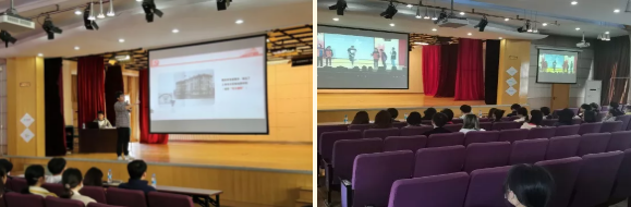 在教学楼四楼的剧场,党训组还观看了一段关于上海市立实验戏剧学校发展史的短片,该片生动形象地展现了熊佛西老校长一心秉承的“至善至美”的上戏精神——扎扎实实地进行才德并重型人才的培养。学工部的薛嘉老师向党训班的同学们介绍了上海市立戏剧学校在解放初期的历史,带领同学们回顾了当年先辈们的奋斗历史,激励同学们传承先辈们爱民族、爱国家的优良品德,培养青年人的担当和责任,发展健全的人格。随后,薛老师又向大家详细展示与解读了习近平总书记给中国戏曲学院师生的回信,希望同学们繁荣发展戏曲事业,全面贯彻党的教育方针,不忘初心、牢记使命,为传承传统文化和建设社会主义文化强国做出更大的贡献。