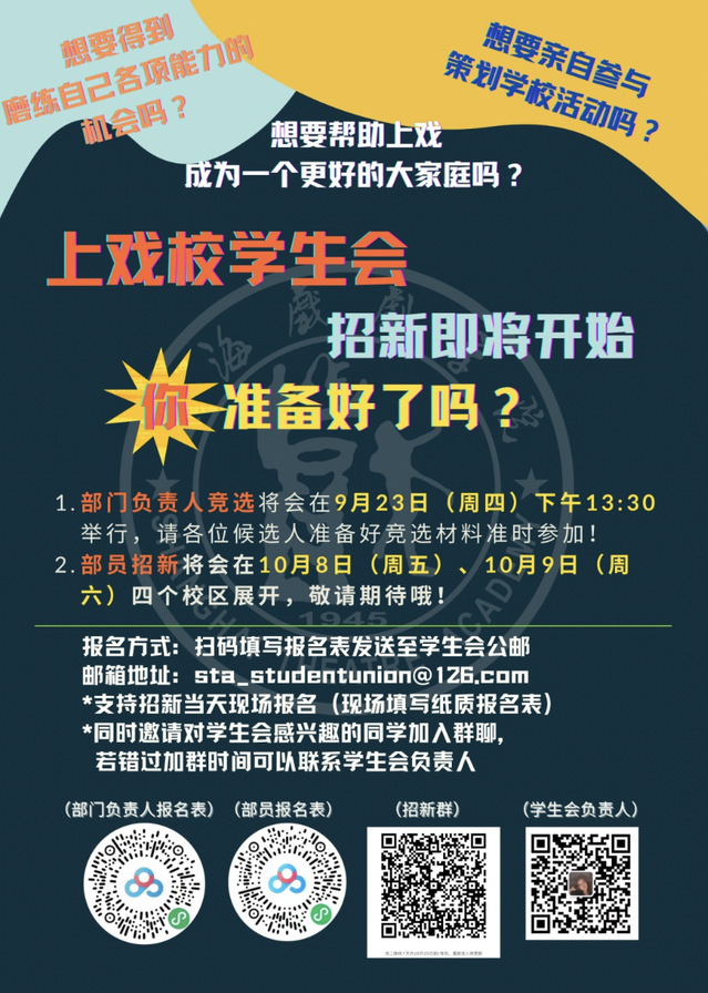 上戏校学生会招新即将开始