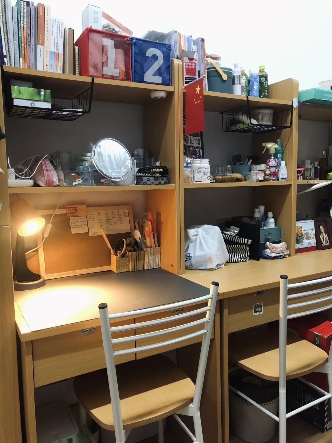 我们每个人都有自己的垃圾桶,每天都会保持个人区域的卫生整洁。公共区域轮流整理,基本上都不会太乱。