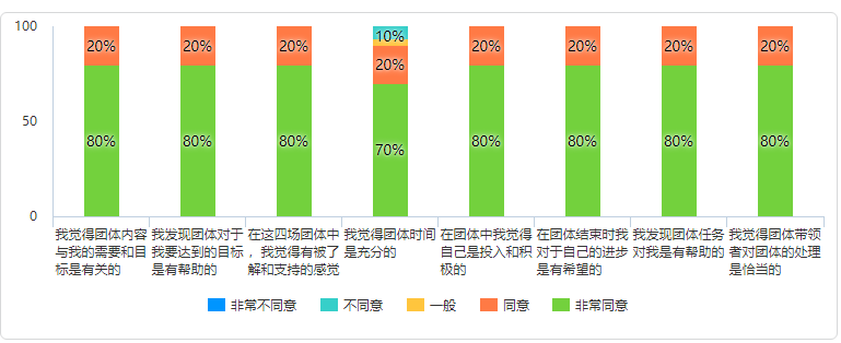 可以看出,在“觉得团体的时间是充分的”这项上,有团体成员表示不同意,认为时间不充分。