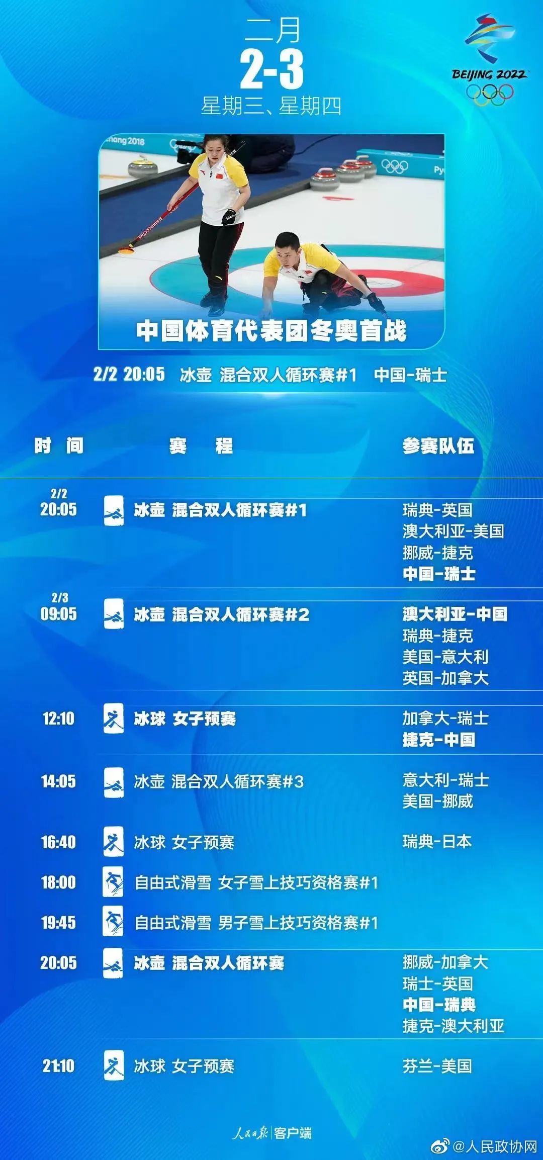 冰壶将是最早开赛的项目,