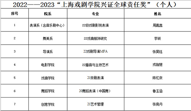 上海戏剧学院2022-2023年度兴证全球责任奖公示