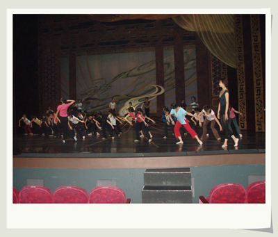 图为舞剧《杨贵妃》演员在梅田剧场走台