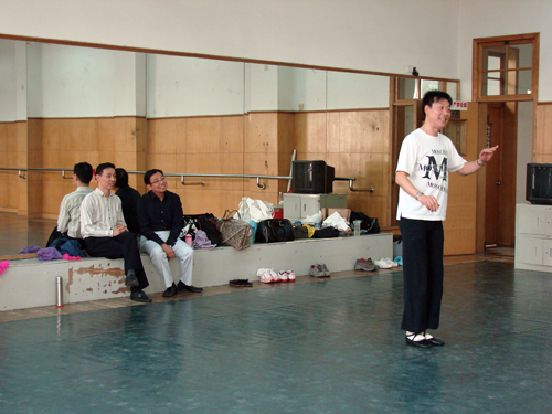 图为:楼巍书记正在观看我院民间舞专业的课堂教学