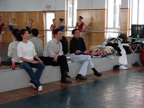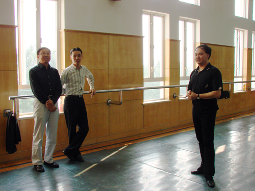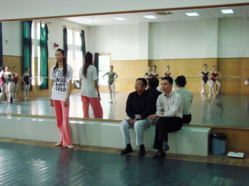 图为:楼巍书记正在观看我院芭蕾舞专业的课堂教学