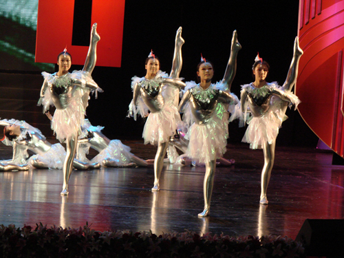 2009年5月27日,一台缅怀为上海解放而浴血奋战的革命前辈,歌颂为上海建设发展作出贡献的英模人物,展示60年上海发展成就,表达对祖国、对上海挚爱之情的《向祖国汇报——庆祝上海解放60周年大型文艺晚会》在上海大剧院隆重举行。上海市领导俞正声、韩正、刘云耕、冯国勤、殷一璀等与各界代表一起,观看了整台晚会。我院应邀参加演出,来自学院的20名学生演员与我国著名歌唱家吴碧霞同台献艺,表演了大型歌舞《共享美好》,演员们以整齐划一的动作、完美的艺术表现力获得了观众的一致好评。