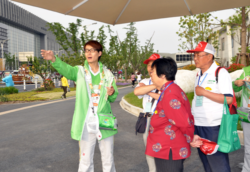 图为:我院志愿者冯晓曈正在服务