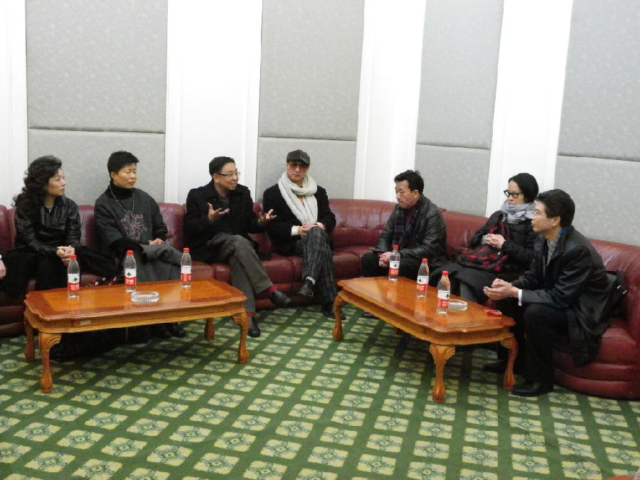 2011年2月28日晚,楼巍书记带领舞美系主任王履伟、服化专业主任、资深服化专家徐家华以及造型、灯光等方面的专家教授莅临舞蹈学院,和舞蹈学院的领导们一同观看了大型舞蹈诗《红》的序幕以及第一幕的部分舞段。汇报结束后,各位领导与专家教授立刻对作品展开了激烈的现场讨论,讨论一直持续到晚上十点半,大家肯定了《红》的创意和创作,认为《红》提供了一个很好的平台,让舞蹈、舞美、灯光等不同专业的老师结合在一起共同创作,作品既在主题上体现了建党90周年的献礼意义,风格又很现代,创意与创作都十分艺术化,是一部艺术性很强的作品,将会受到国内外观众的青睐,这将会是一次伟大的创作。(文:刘慧明 图:刘建明)