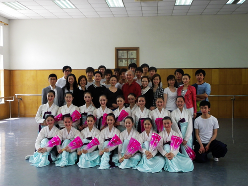 2011年4月29日上午,在练功楼304教室举行了延边大学金英花老师朝鲜族民间舞专家课汇报。舞蹈学院陈家年、林剑龙、凌桂明、李海霞等院领导观看了此次汇报。