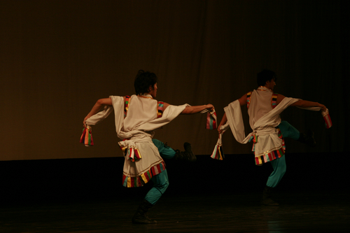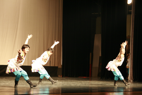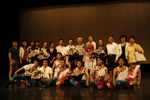 晚上六点整,此次交流会的第二项活动内容——藏族民间舞教学展示在莲花路剧场举行。中央民族大学舞蹈学院的同学们为大家献上了一台精彩的教学展示。没有炫目的灯光、没有华丽的服饰,但整场展演却处处流淌着舞蹈艺术最本真、最质朴的美。用心而舞、用情而舞,这7位可爱而淳朴的藏族同学,用他们对舞蹈最执着的爱,整整表演了19个组合。在场的所有观众都被他们的魅力而折服,陶醉在藏族舞蹈的神韵之中,意犹未尽……