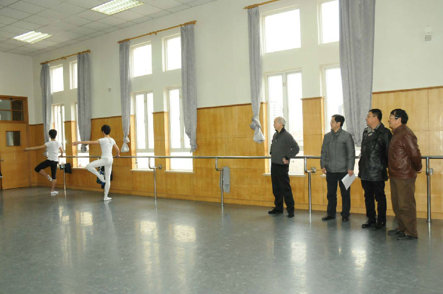 图为院领导巡查芭蕾舞课堂学习情况