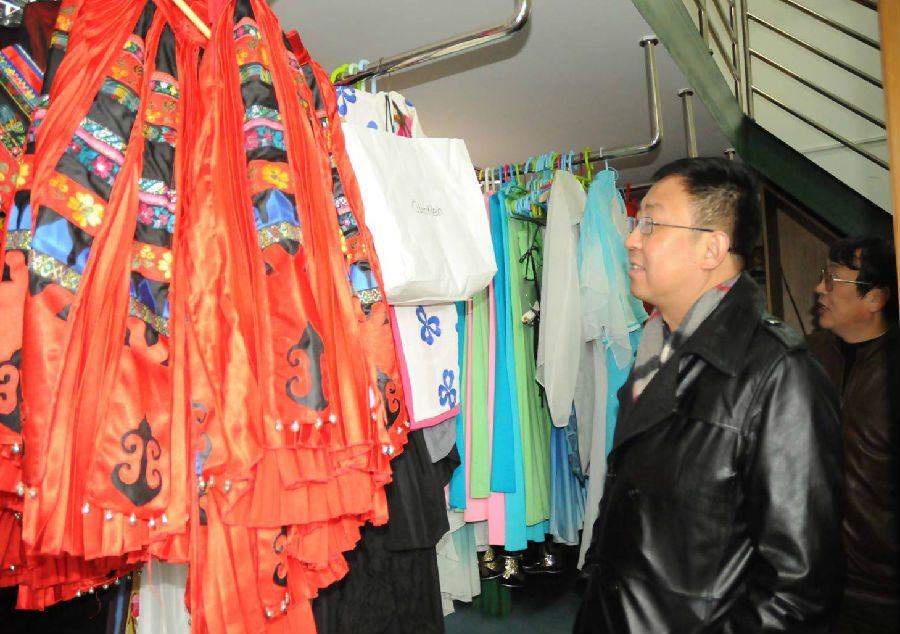 图为楼巍书记视察服装间的使用情况
