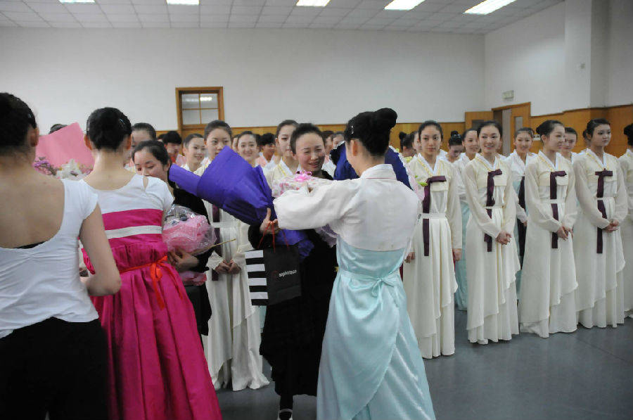 延边大学艺术学院舞蹈系教研室主任金英花老师是一位在舞蹈理论、教学、创作、表演等方面均建树瞩目的专家。此次已是第二次莅临我院授课,她以一套民族风格浓郁的朝鲜族舞蹈教材吸引着民间舞专业的师生们。此次授课的主体是09级和10级民间舞专业的学生,他们在一个月的授课中深入学习了朝鲜族民间舞蹈组合及剧目,并在学习的过程中取得了令人欣喜的进步。而随堂观摩的舞蹈学院以及附属舞蹈学校的教师们也是获益匪浅,金英花老师的授课给他们的教学以很大的启发,带来许多教学上的思索。(图/文/编辑:张婉君)