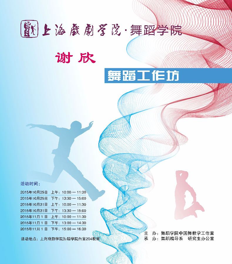 此次舞蹈学院有幸邀请到谢欣来举办舞蹈工作坊,希望广大师生能够踊跃参加,具体时间见如下海报: