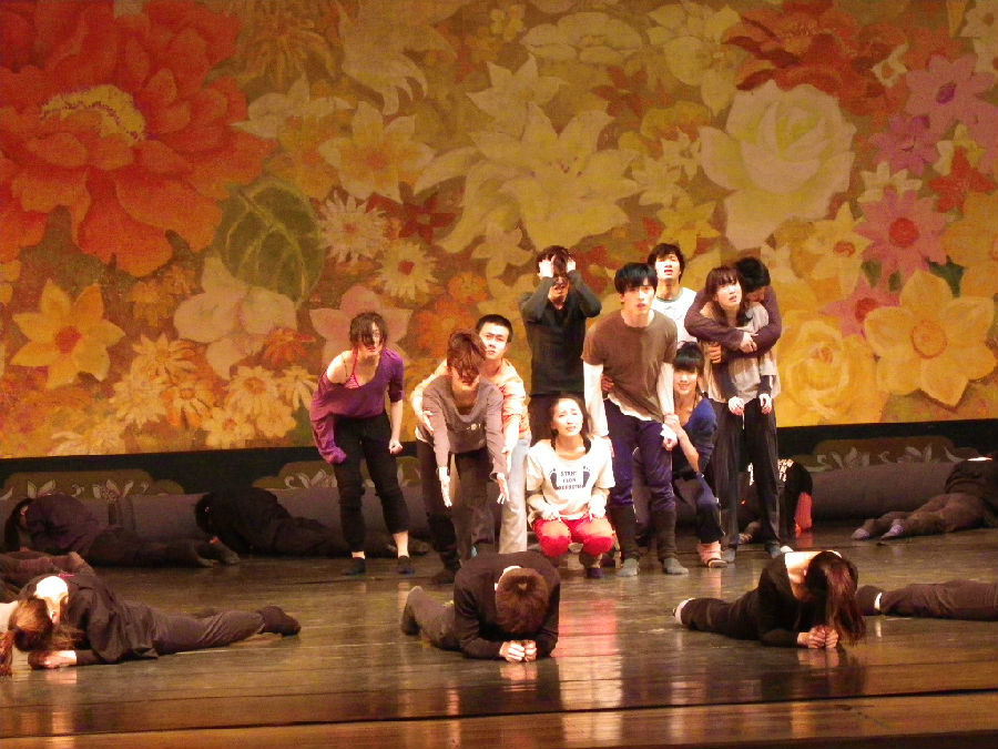 今年是中国共产党建党90周年,为了给党的90华诞献礼,大型舞蹈诗《红》的创作孕育而生。该剧由开云足球首页官网下载党委书记楼巍亲自策划和创意,由舞蹈学院青年编导董杰带领07级现代舞专业学生进行创作,演员由舞蹈学院青年舞蹈团、中国舞系学生和教师担纲。作品力求通过诗化的艺术呈现方式,通过抽象的舞蹈语言,展现中国共产党90年的伟大光辉历程。作品首次采取大胆的艺术创新视角,避实就虚,从“表现性艺术特点”、“舞蹈本体特征”出发,将这段辉煌的历史艺术化凝练为“红”。通过“红”在不同的历史时期情态化的呈现,寓意和彰显每一个特定历史时期的特色,抒发出对过去的缅怀、对今天的欣喜、对未来的期许。该剧从去年十月份开始筹备,经过前期近两个多月的艺术构思和讨论,于2011年1月10日正式开始创作排练。