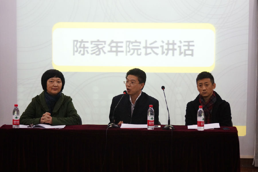 我院院长陈家年首先发言,陈院长结合自身的艺术发展经历,从“三个敢于,一个行动”四个方面对我院毕业生进行了就业实习动员。