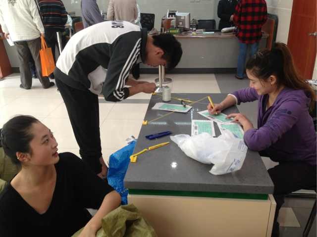 图为:同学们在邮局办理捐赠手续