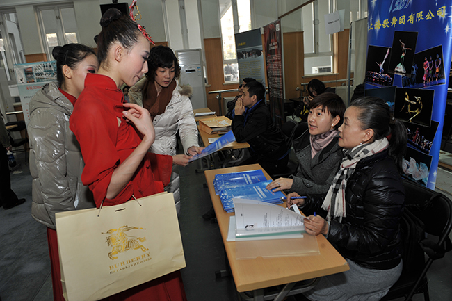 2014年1月3日,开云足球首页官网下载舞蹈学院2010级本科毕业汇报演出在莲花路白宫剧场正式开始。汇报分两场,上午是课堂教学内容、下午是剧目演出部分。为了能给毕业生就业提供一个良好的渠道,我院前期不断向全国各地优秀的院团体发出邀请函,并确认回执过来的单位名单。演出当天,白宫剧场聚集了30多个用人单位前来参加供需会,希望学院的举措能够为毕业生提供一个良好的双选机会。