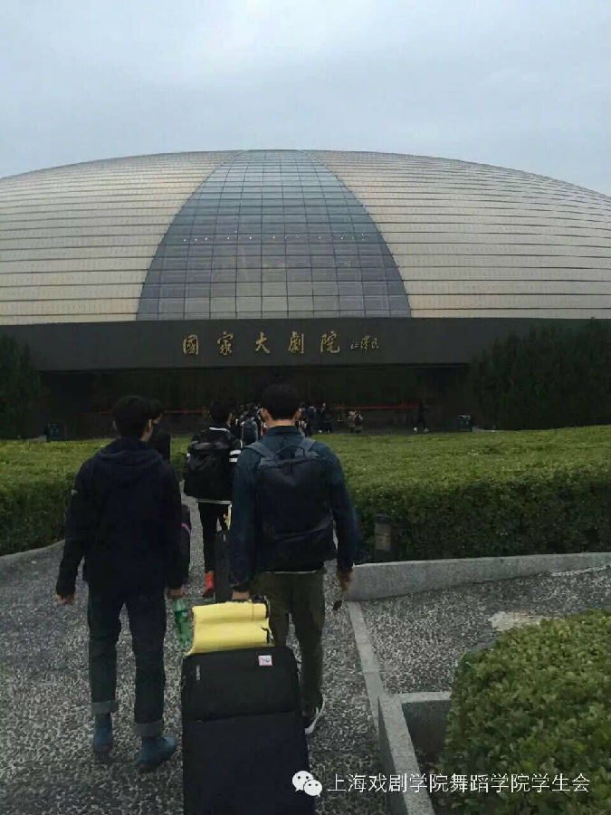 10月24日一大早,我们磨拳擦掌,整装待发,坐上了去往北京国家大剧院的动车。一下动车,我们就感受到了寒风的凛冽,刮在身上刺骨的冷,但是我们的内心充满了热量,这种热量持续膨胀,我们没有寒冷,只有满腔热血与信心。立马感受到了什么叫做庄严又气派,就连化妆间都大的像个迷宫一样,收拾完东西去舞台的侧台,没想到侧台就像舞台那么大,我们每个人把自己的东西放在地上,席地而坐,这场面让人不禁想起了春运时期的火车站。n(*≧▽≦*)n人的一生中有几次机会能够在国家大剧院的舞台上翩然起舞呢?内心中抹不去的对《红》的渴望与兴奋,这种奇妙的力量鼓舞着我们。