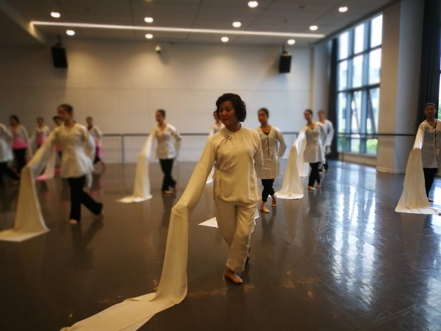 下午14点,结束了简短的教学研讨后,邵教授又进入教室,换上了古典舞水袖,为我院古典舞教师们和同学们展开了充满意蕴的古典舞课程。